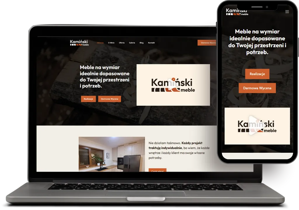 Realizacja strony lokalnej marki Meble Dariusz Kamiński, oferującej meble na wymiar z ponad 20-letnim doświadczeniem, stworzyliśmy nowoczesną stronę wizytówkę. Projekt skupia się na prezentacji unikalnych realizacji, od kuchni i łazienek po indywidualne, nietypowe zamówienia, wszystko wykonywane z pełnym zaangażowaniem przez właściciela.